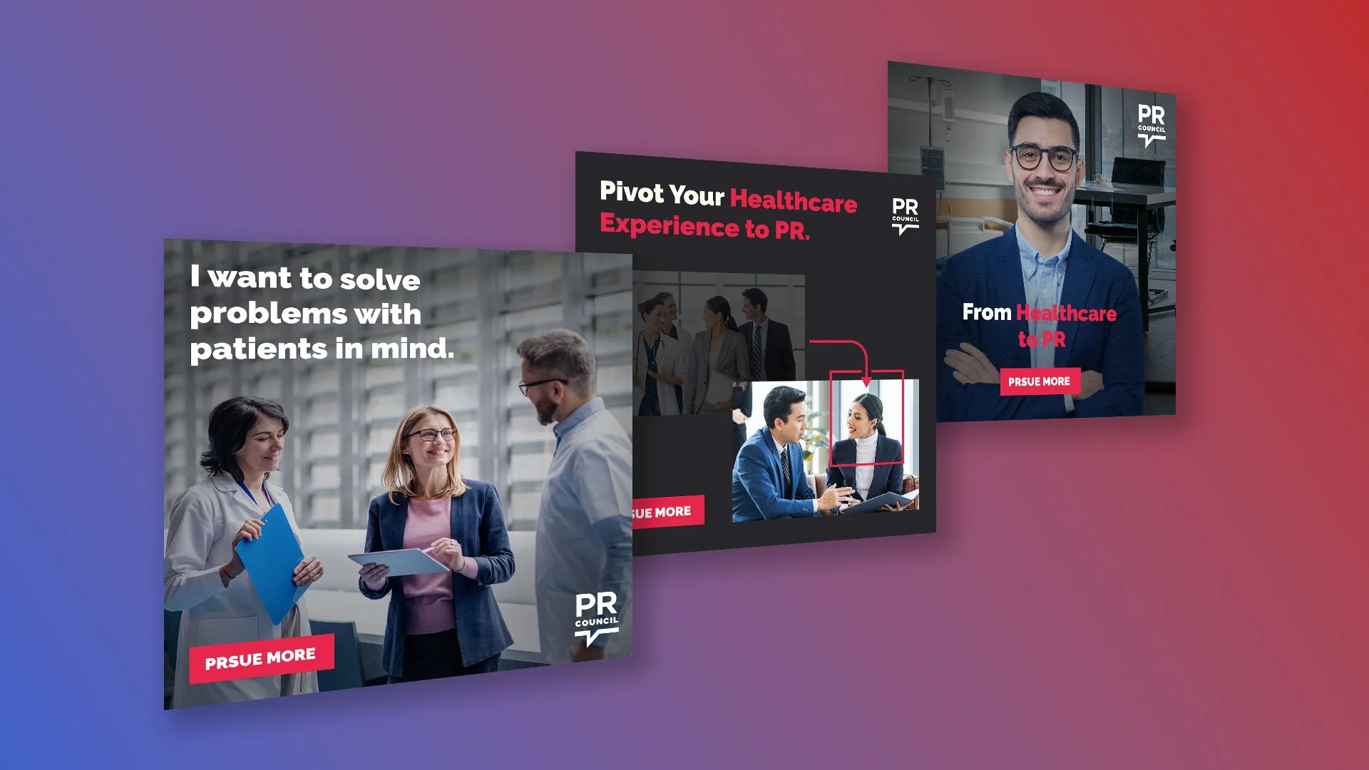 A series of social ads promoted the microsite and targeted professionals who may be open to pivoting careers. The ads drove traffic to the site and introduced the idea of transitioning into PR.